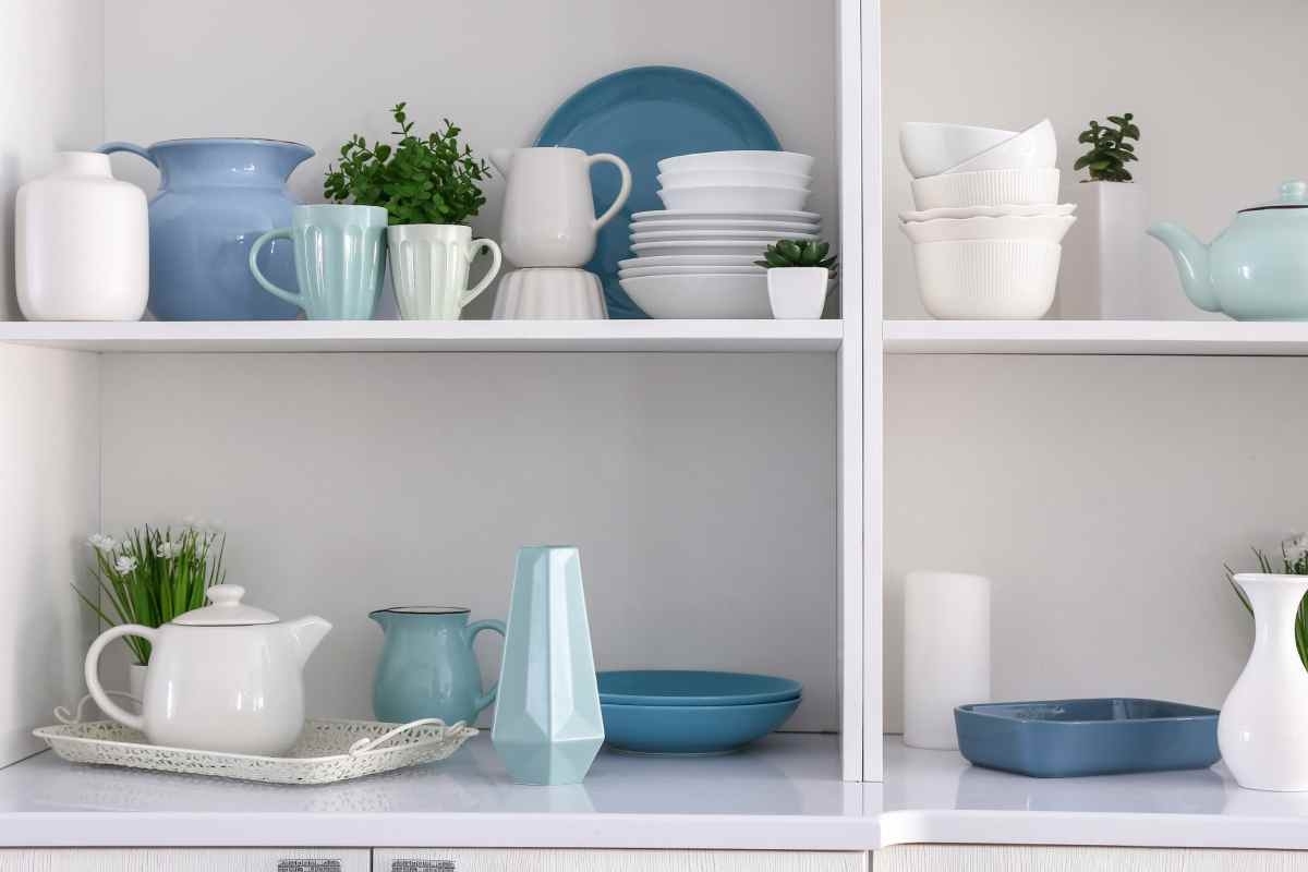 If you love vibrant colors, turn your kitchen shelves into a dynamic, eclectic display. Mix and match colorful dishes, cups, and bowls. Add some fun cookbooks or cute cookie jars to the mix.